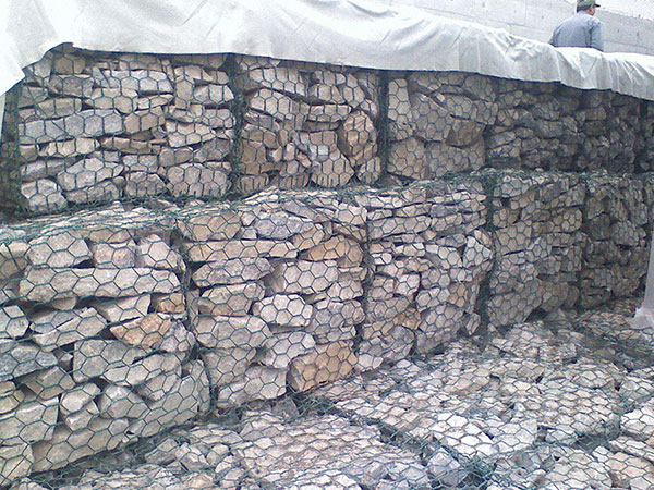 石籠網(wǎng)是使填石固定就位的鐵絲或聚合物絲網(wǎng)格式制作物。鐵絲籠是由鐵絲編織的網(wǎng)格或焊接而成的結(jié)構(gòu)物。這兩種結(jié)構(gòu)可以是電鍍的,編織的鐵絲箱可另外涂上PVC。用抗風(fēng)化堅(jiān)硬石塊作填料,它在石箱或石籠沉排中不會(huì)因磨蝕而很快破碎。裝有不同類型的塊石的石籠有不同的特性。多角的塊石能相互很好地聯(lián)鎖在一起,用其填裝的石籠不易變形。