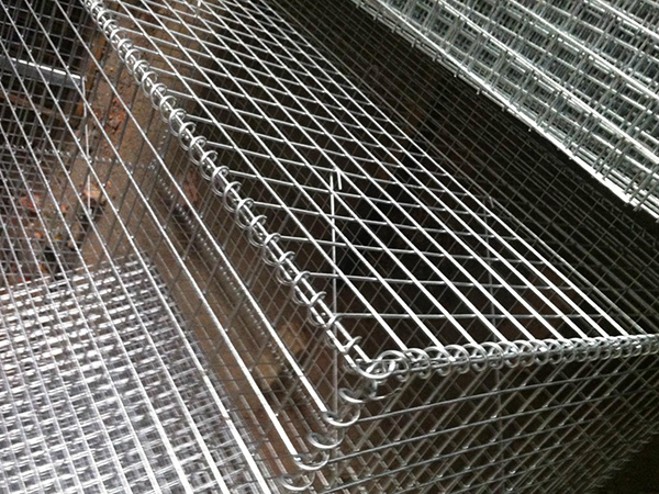 采用組裝方式,蓋板,邊板,端板,底板單獨(dú)生產(chǎn)組裝成網(wǎng)箱,各部分用螺旋鋼絲纏繞捆綁,網(wǎng)箱所有邊絲均采用粗絲加強(qiáng)石籠網(wǎng)箱的強(qiáng)度。